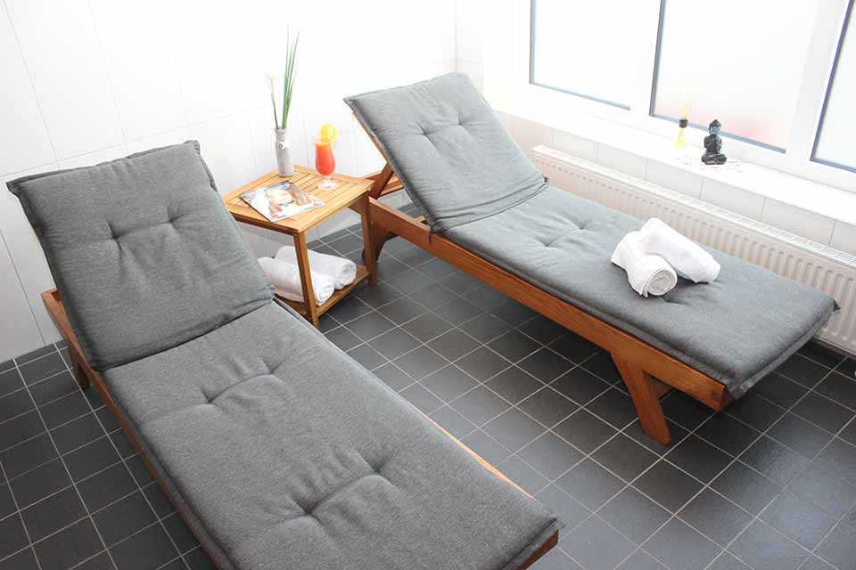 Zwischen den Saunagängen oder nach dem Dampfbad können Sie in unserem Ruhebereich relaxen und ganz entspannt den Alltag weit hinter sich lassen.